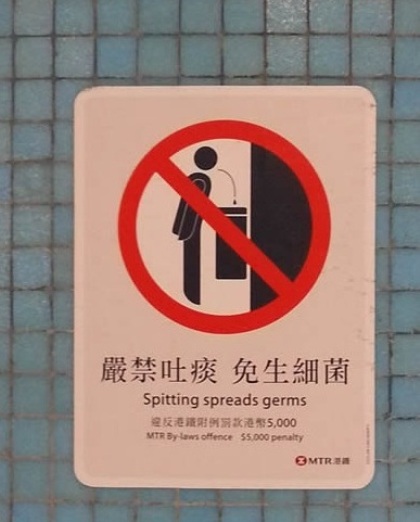 Nếu một số nơi ở Trung Quốc đại lục chấp nhận việc khạc nhổ như một việc xua đuổi tà ma, tại Hong Kong điều đó lại không bao giờ được chấp nhận. Sau dịch SARS năm 2003, việc khạc nhổ chính thức bị cấm ở Hong Kong. Hiện nay, bạn sẽ bị phạt 5.000 HKD (14 triệu đồng) nếu vi phạm.